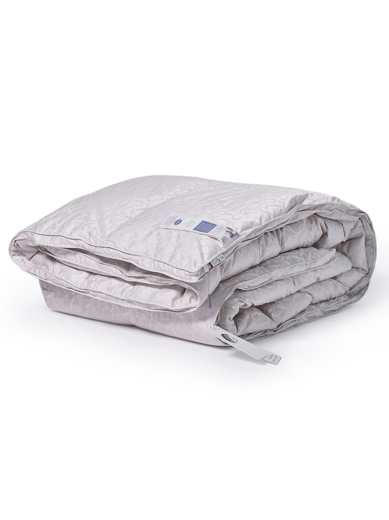 Пуховый наполнитель высокого качества остается непревзойденным утеплителем. Бортик одеяла позволяет пуху свободно распределяться в своей кассете, благодаря этому скопления пушинок без стеснения удерживают большее количество воздуха, что делает одеяло таким легким и очень теплым. <br />