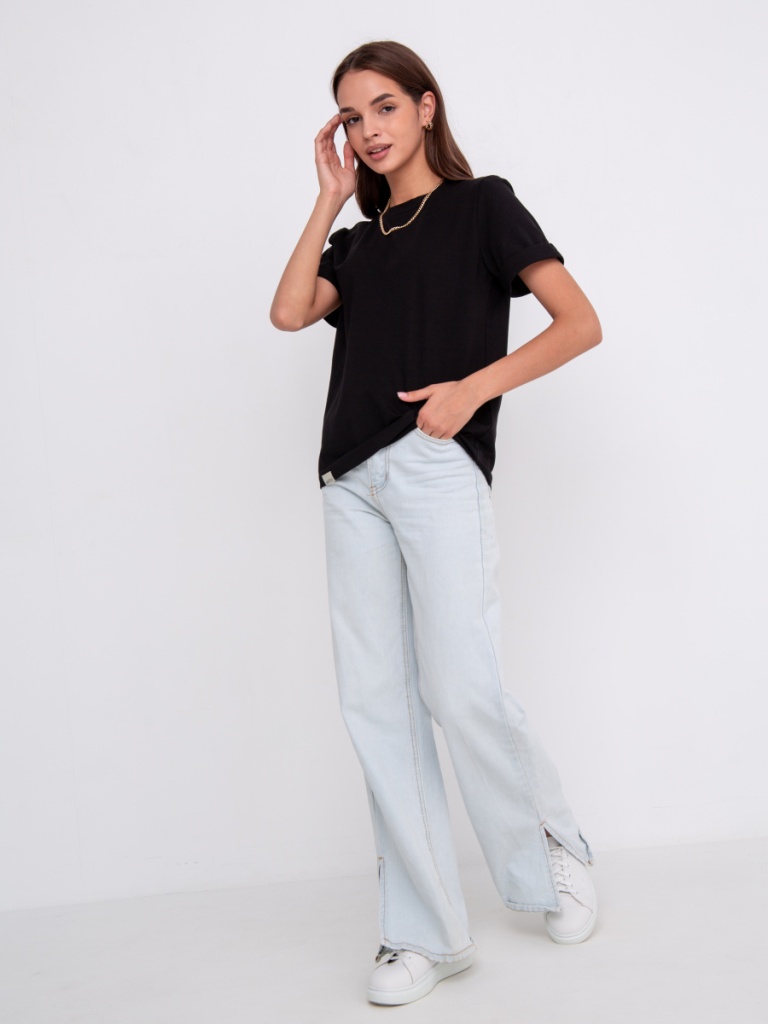 Футболка базовая однотонная из кулирки с лайкрой. Манжеты на рукавах.