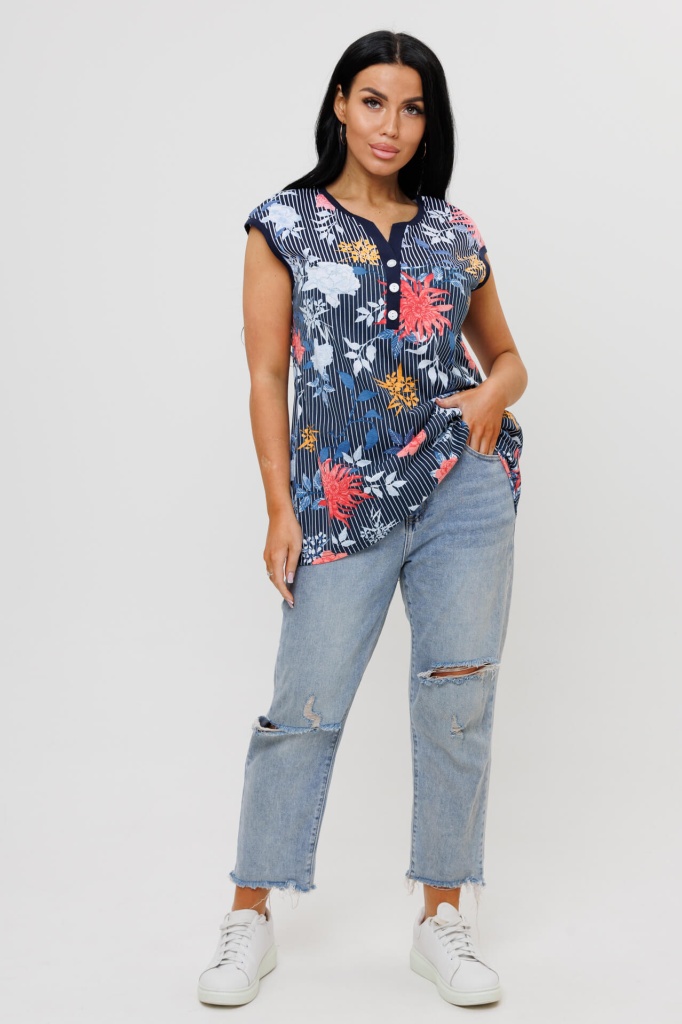 Футболка – универсальный предмет гардероба каждой современной женщины. Футболка женская 1971/1 / Темно-синий со спущенным цельнокроеном рукавом имеет необычный вид и позволяет сделать привычный образ с джинсами или шортами более интересным. Футболка полуприлегающего силуэта сшита из трикотажного 100% хлопкового полотна. Круглый вырез с застежкой планкой на пуговицах придает женственность и элегантность. Футболку можно носить как повседневную одежду для дома, работы, прогулок, встреч с друзьями, пляжную тунику для отдыха на море или у бассейна.