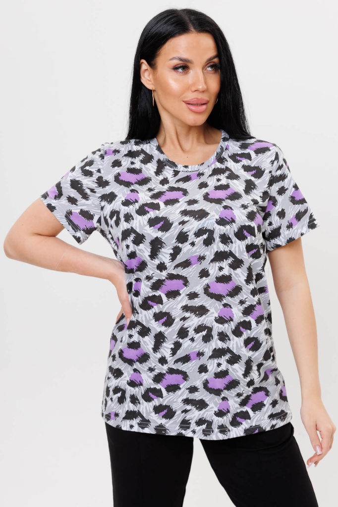 Женская футболка 2002 / Фиолетовый с коротким рукавом и анималистическим ярким принтом из кулирки (100% хлопок).