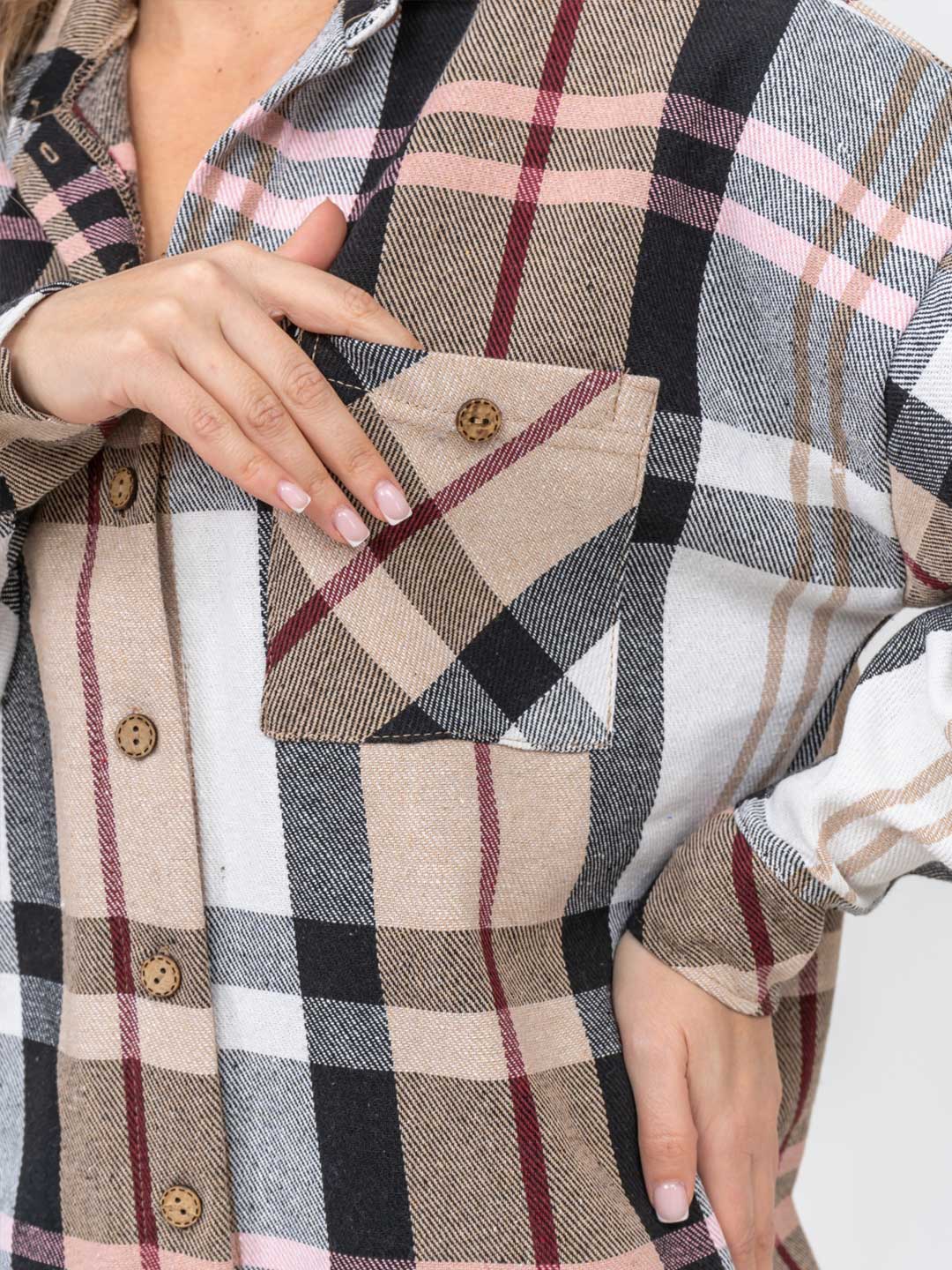 Женская рубашка в клетку оверсайз – это стильная и универсальная одежда, которая предлагает комфорт и свободу движений. Эта модель рубашки отличается своей тонкой фланелевой текстурой, которая идеально подходит для демисезона. Тонкая фланелевая ткань является известной своей мягкостью и приятным на ощупь ощущением. Женская рубашка из этого материала – идеальный выбор, потому что она предлагает легкое ощущение и уют на коже. Рубашка имеет красивый дизайн в клетку, что является классическим и модным выбором для многих женщин. Классическая клетка добавляет некий шарм и стиль к вашему образу, создавая модный и элегантный вид. Данная модель удлиненная, свободного прямого кроя, что является одним из главных трендов современной моды.
