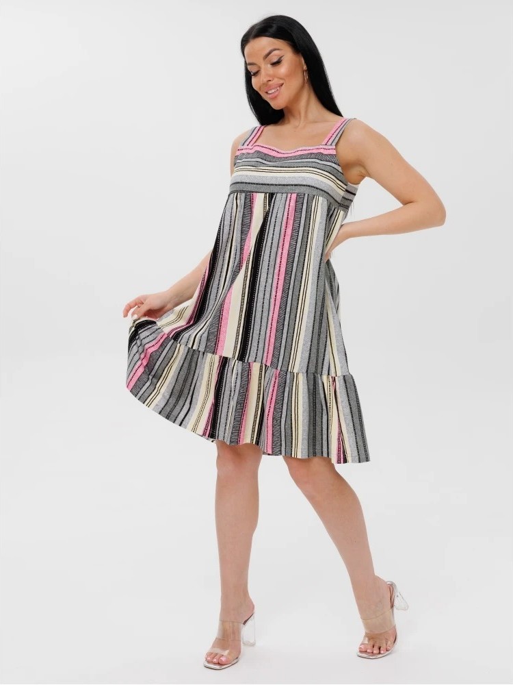 Женский сарафан С-92(К) / Розовый (полосы) из натурального хлопка, кулирка.