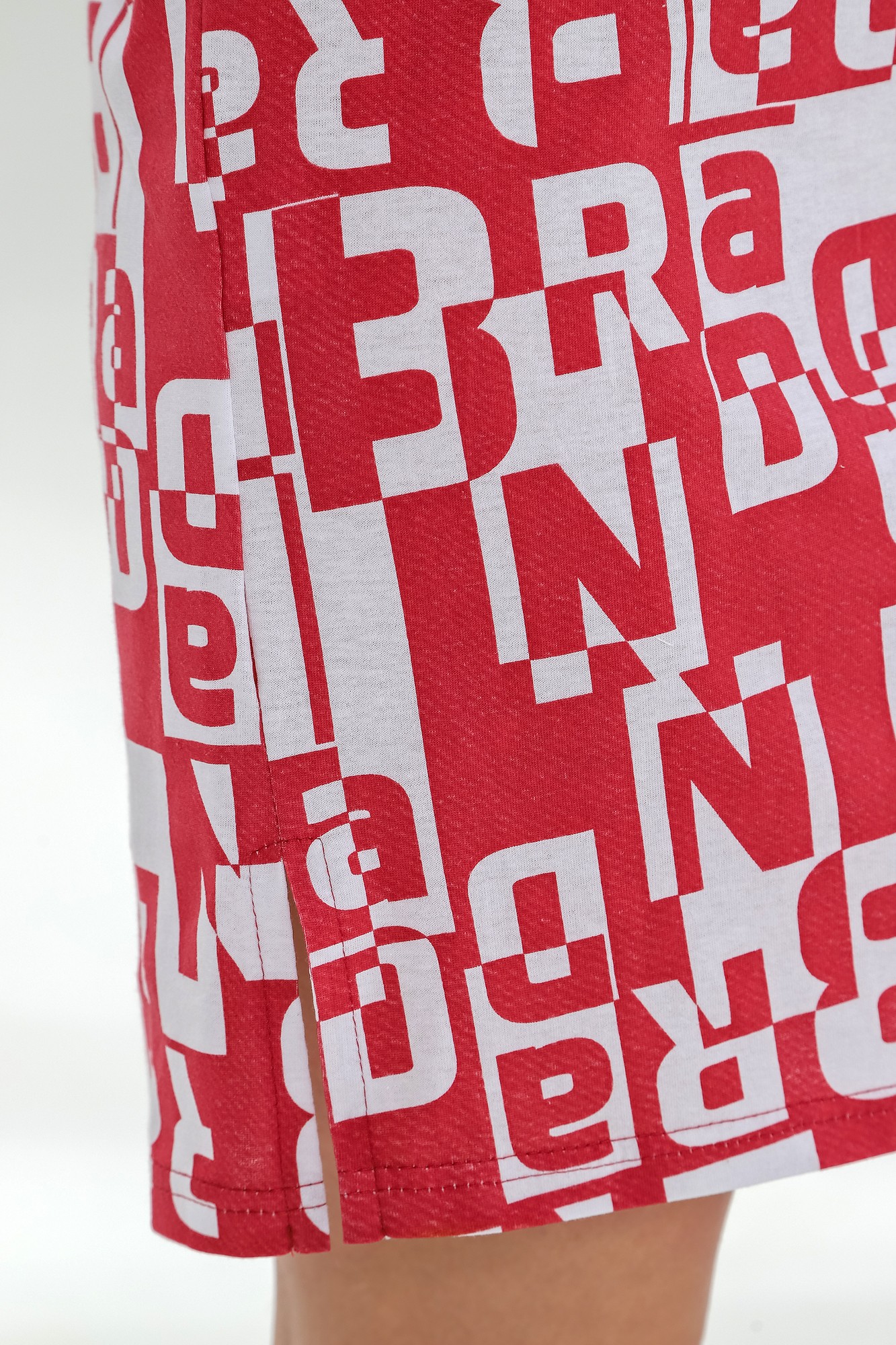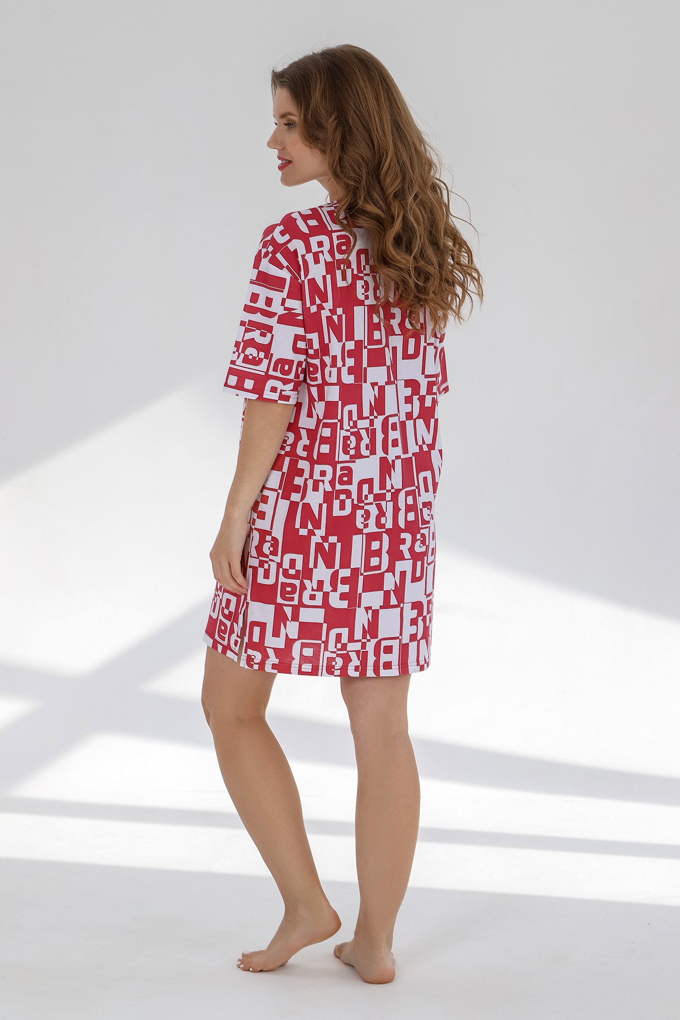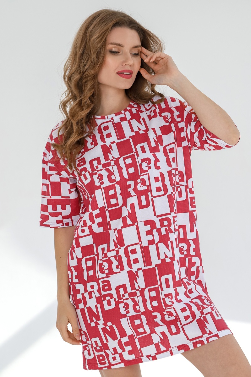 Туника молодежная из трикотажного полотна «кулирка» с набивным рисунком, прямого силуэта, с приспущенным плечом и втачными короткими рукавами. Горловина овальной формы обработана притачной бейкой. В нижней части боковых швов – разрезы.
